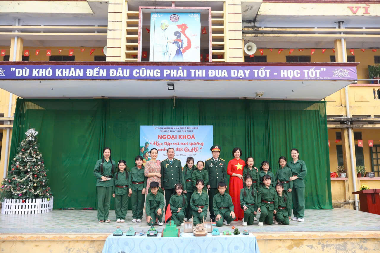Hội CCB xã Đông Tiên Hưng với trường Tiểu học và THCS Phú Châu tổ chức hoạt động ngoại khóa "Học tạp và noi gương anh Bộ đội cụ Hồ"