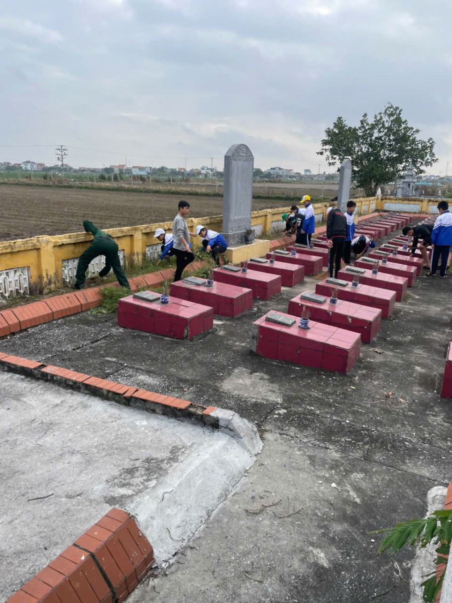 Theo đó, Hội CCB xã đã tổ chức ra quân vệ sinh môi trường, chỉnh trang khuôn viên các Đài tưởng niệm, Nghĩa trang liệt sĩ trên địa bàn xã; đồng thời tổ chức lễ dâng hương tưởng niệm các anh hùng liệt sĩ trong không khí trang nghiêm, thành kính. Đây là hoạt động thể hiện lòng biết ơn sâu sắc của cán bộ, hội viên Hội CCB đối với những người con ưu tú của quê hương đã anh dũng hy sinh vì độc lập, tự do của Tổ quốc.