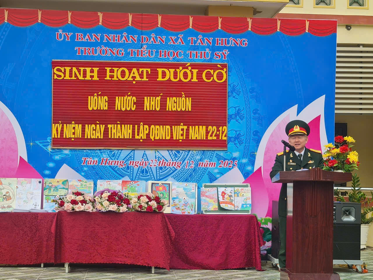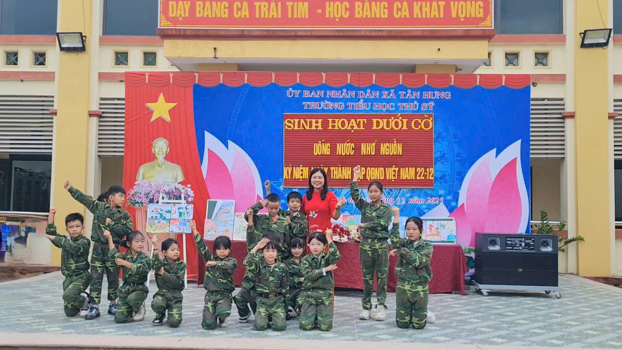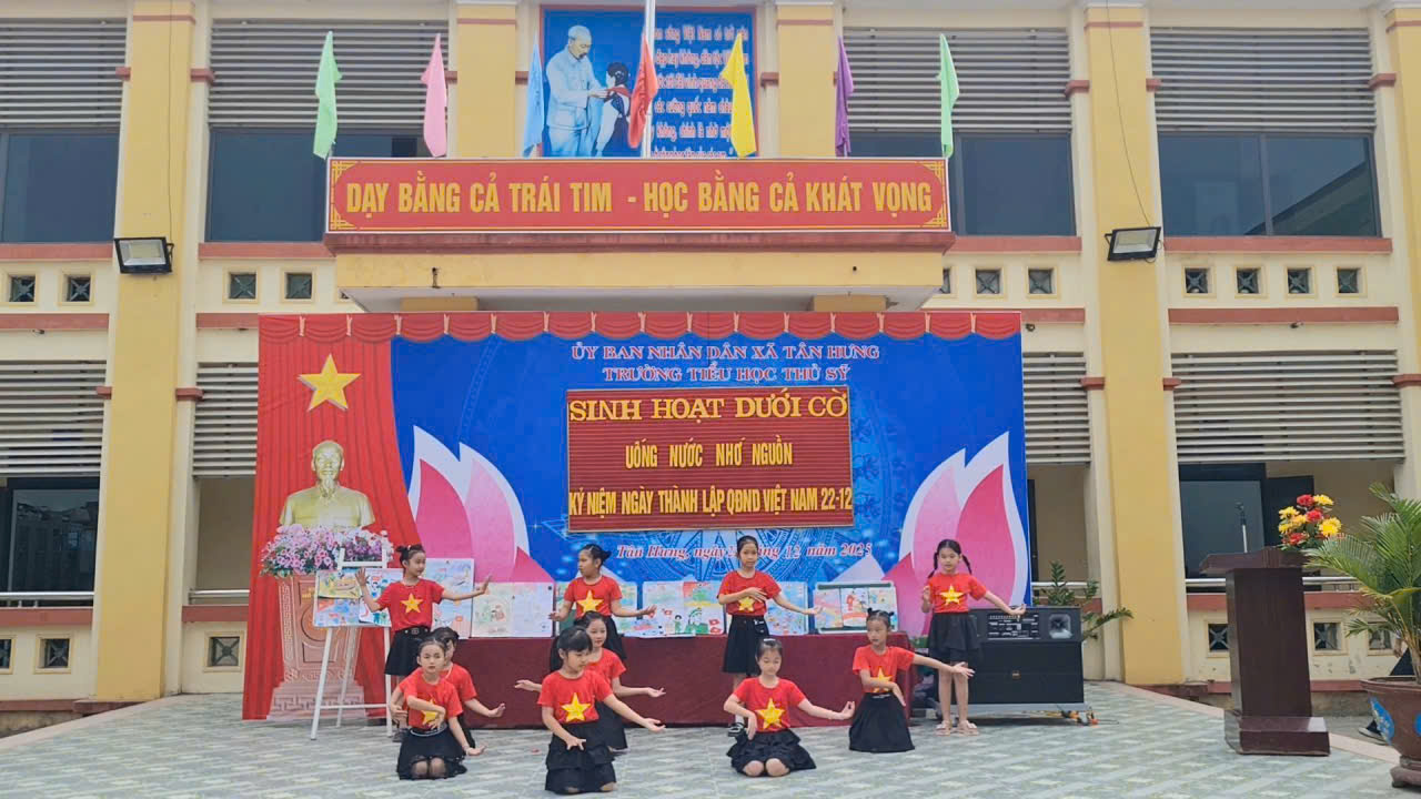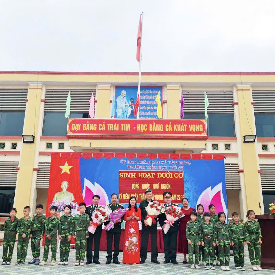 Nhân kỷ niệm 81 năm Ngày thành lập Quân đội nhân dân Việt Nam (22/12/1944 – 22/12/2025) và 36 năm Ngày thành lập Hội Cựu chiến binh Việt Nam (06/12/1989 – 06/12/2025), Hội Cựu chiến binh xã Tân Hưng đã phối hợp với nhà trường tổ chức buổi sinh hoạt dưới cờ với chủ đề “Uống nước nhớ nguồn”, nhằm tuyên truyền, giáo dục truyền thống cách mạng cho cán bộ, giáo viên và học sinh.