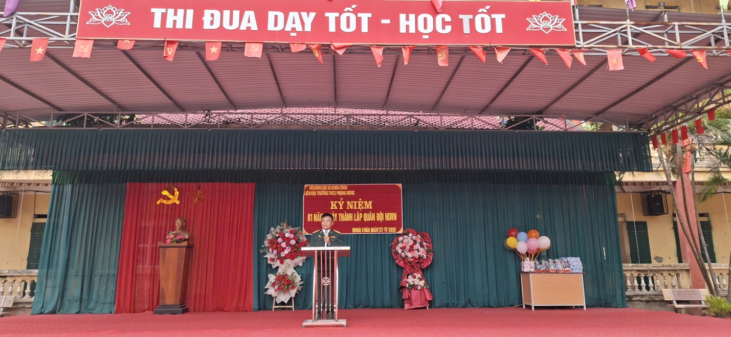Nhân kỷ niệm 81 năm Ngày thành lập Quân đội nhân dân Việt Nam (22/12/1944-22/12/2025) và 36 năm Ngày hội Quốc phòng toàn dân (22/12/1989- 22/12/2025), Hội Cựu chiến binh xã Khoái Châu đã phối hợp với 02 nhà trường: Trường THCS Phùng Hưng và trường THCS Khoái Châu tổ chức hoạt động tuyên truyền, giáo dục truyền thống cách mạng cho học sinh nhà trường