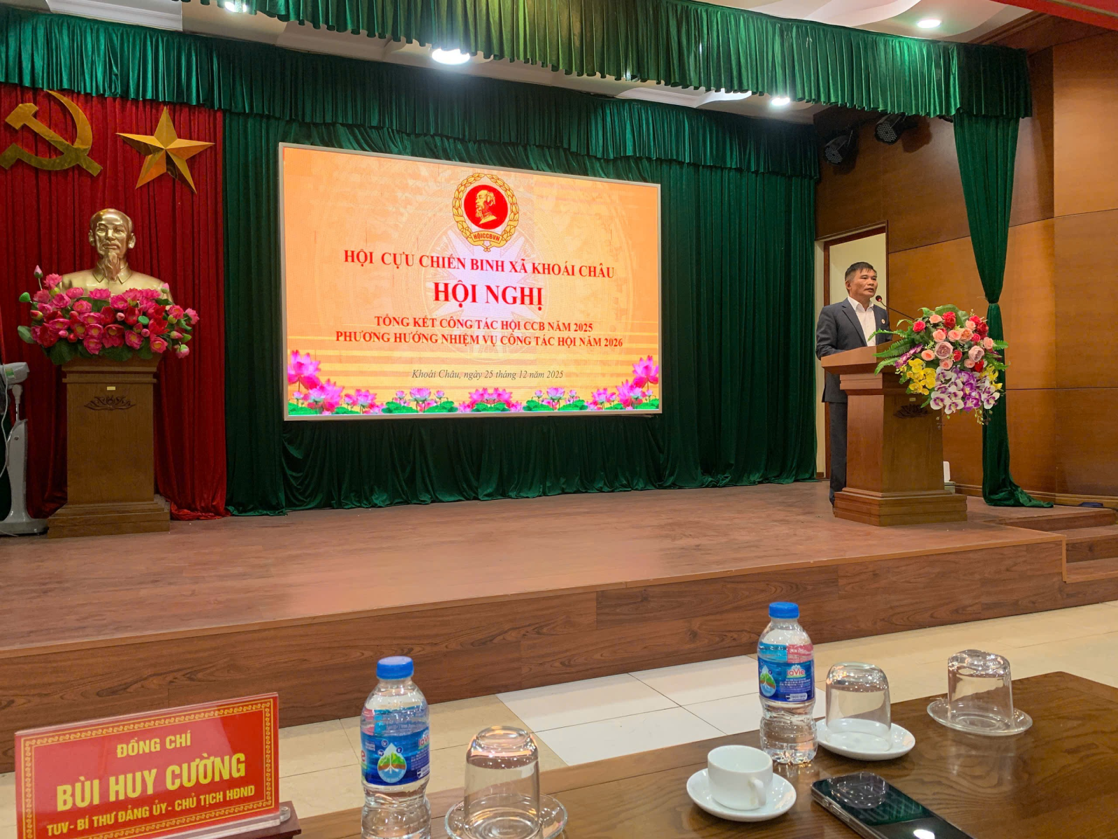 Ngày 25 tháng 12 năm 2025, Hội Cựu chiến binh xã Khoái Châu tỗ chưc Hội nghị tổng kết công tác Hội năm 2025, triển khai phương hướng nhiệm vụ công tác Hội năm 2026. Năm 2025. Hội Cựu chiến binh xã luôn bám sát sự lãnh đạo, chỉ đạo của Đảng Ủy-HĐND-UBND-UBMTTQ xã, sự chỉ đạo của Hội CCB tỉnh Hưng Yên, triển khai có hiệu quả các nhiệm vụ công tác Hội năm 2025 và phong trào thi đua yêu nước, góp phần tích cực vào sự phát triển kinh tế – xã hội, giữ vững quốc phòng – an ninh tại địa phương.