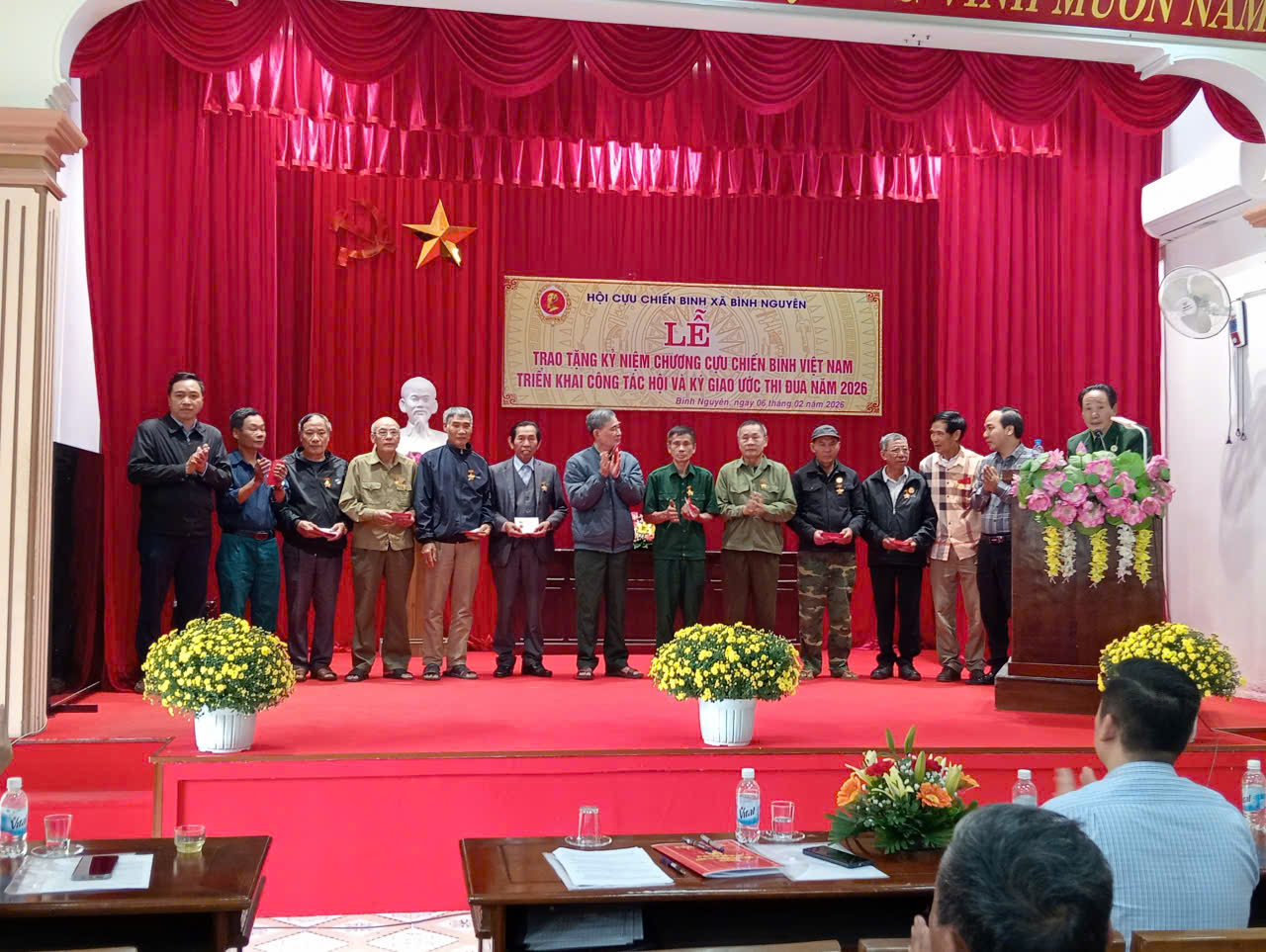 Được sự nhất trí của Thường trực Đảng ủy và Ban thường trực Ủy ban MTTQ xã, chiều ngày 06/02/2026, tại Hội trường Đảng ủy xã, Hội CCB xã Bình Nguyên long trọng tổ chức Lễ trao tặng Kỷ niệm chương CCB Việt Nam, triển khai nhiệm vụ trọng tâm công tác Hội và ký giao ước thi đua năm 2026.