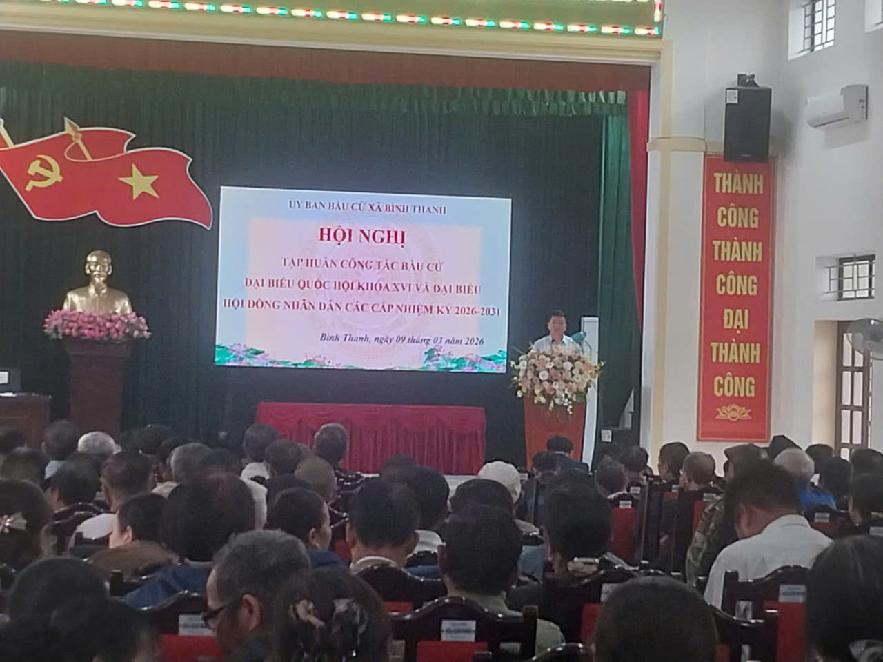 Sáng ngày 09/3/2026, được sự đồng ý của Đảng ủy và Ủy ban MTTQ Việt Nam xã Bình Thanh, tại Nhà văn hóa xã Bình Thanh, Hội Cựu chiến binh, Hội Nông dân và Đoàn Thanh niên xã đã phối hợp tổ chức Hội nghị tuyên truyền về công tác bầu cử đại biểu Quốc hội khóa XVI và đại biểu Hội đồng nhân dân các cấp nhiệm kỳ 2026 – 2031.
