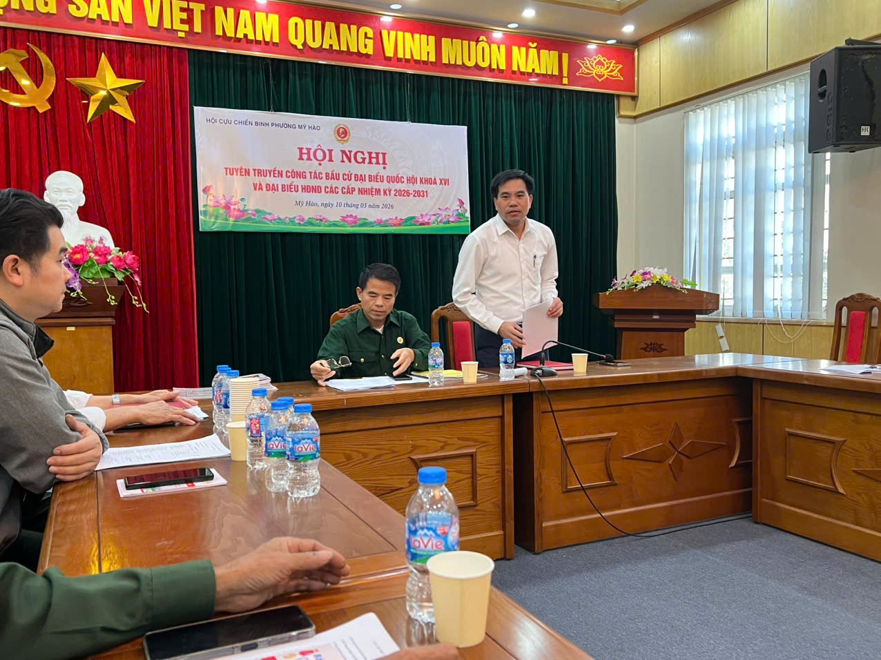 Ngày 10/3/2026, Ban Chấp hành Hội Cựu chiến binh phường Mỹ Hào tổ chức hội nghị tuyên truyền về công tác bầu cử đại biểu Quốc hội khóa XVI và bầu cử đại biểu Hội đồng nhân dân các cấp nhiệm kỳ 2026 – 2031. Đến dự và chỉ đạo hội nghị có đồng chí Lương Khắc Hảo – Ủy viên Ban Thường vụ Đảng ủy, Chủ tịch Ủy ban Mặt trận Tổ quốc Việt Nam phường Mỹ Hào. Cùng dự có các đồng chí trong Ban Chấp hành Hội Cựu chiến binh phường .