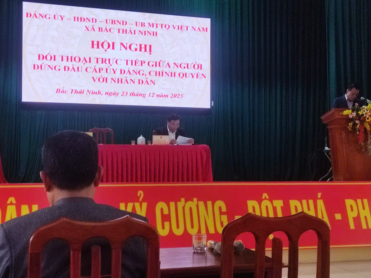 Chiều ngày 23/12/2025, tại Hội trường UBND xã Bắc Thái Ninh, Đảng ủy - HĐND - UBND - Ủy ban MTTQ Việt Nam xã tổ chức Hội nghị đối thoại trực tiếp giữa người đứng đầu cấp ủy Đảng, chính quyền với Nhân dân. Hội nghị là diễn đàn dân chủ quan trọng, qua đó khẳng định rõ vai trò, trách nhiệm của các tổ chức chính trị – xã hội, trong đó Hội Cựu chiến binh xã Bắc Thái Ninh tiếp tục phát huy vị trí nòng cốt, gương mẫu trong tham gia xây dựng Đảng, chính quyền ở cơ sở.