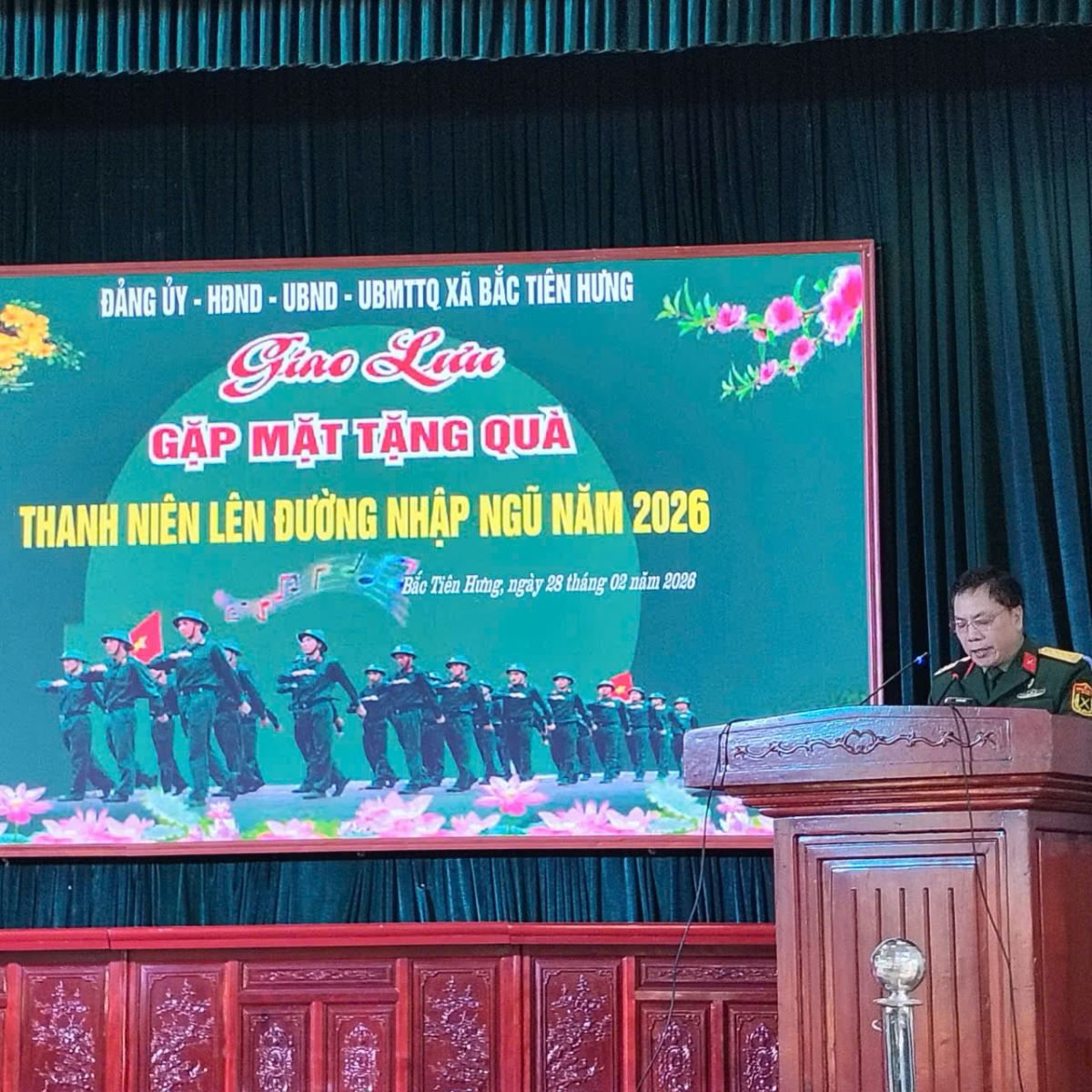 75 thanh niên xã Bắc Tiên Hưng lên đường nhập ngũ hôm nay là 75 hạt giống đỏ của quê hương. Các đồng chí mang theo niềm tin của Đảng bộ, chính quyền, Hội Cựu chiến binh và toàn thể nhân dân xã nhà. Chúng ta tin tưởng rằng, dưới mái nhà chung của Quân đội Nhân dân Việt Nam, các đồng chí sẽ được tôi luyện, trưởng thành, xứng đáng với truyền thống anh hùng của dân tộc và của quê hương Bắc Tiên Hưng giàu truyền thống cách mạng.