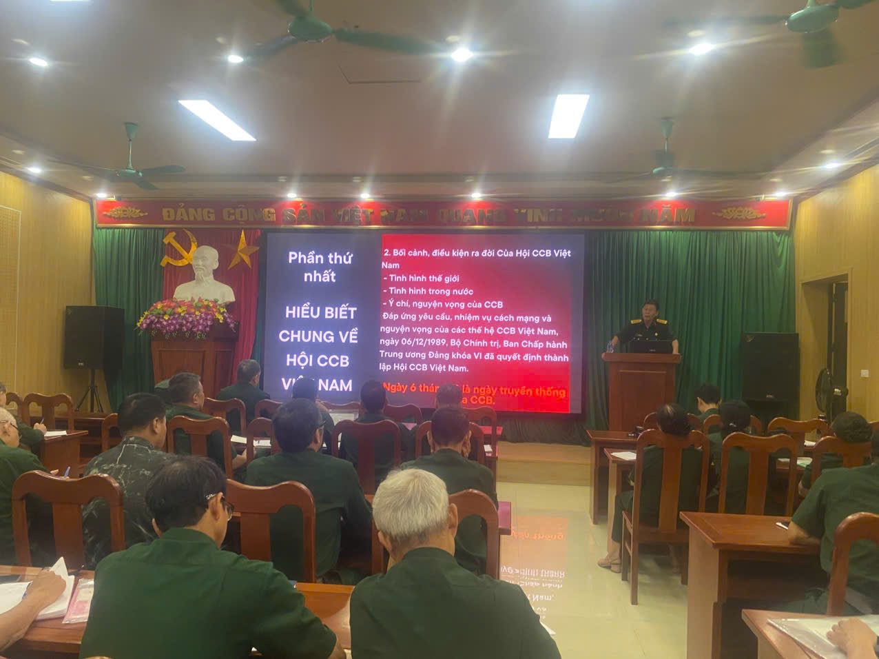 Sau Lễ khai giảng, các học viên đã được nghiên cứu, học tập chuyên đề "Hiểu biết chung về Hội CCB Việt Nam; một số nội dung công tác chủ yếu của chi Hội cựu chiến binh" do đồng chí Phạm Tuấn Hùng- Phó chủ tịch Hội CCB tỉnh truyền đạt. Các học viên sẽ học tập trong thời gian 03 ngày, trong đó có 1/2 ngày học tập thực tế tại mô hình sản xuất kinh doanh đồ đồng của hội viên CCB.