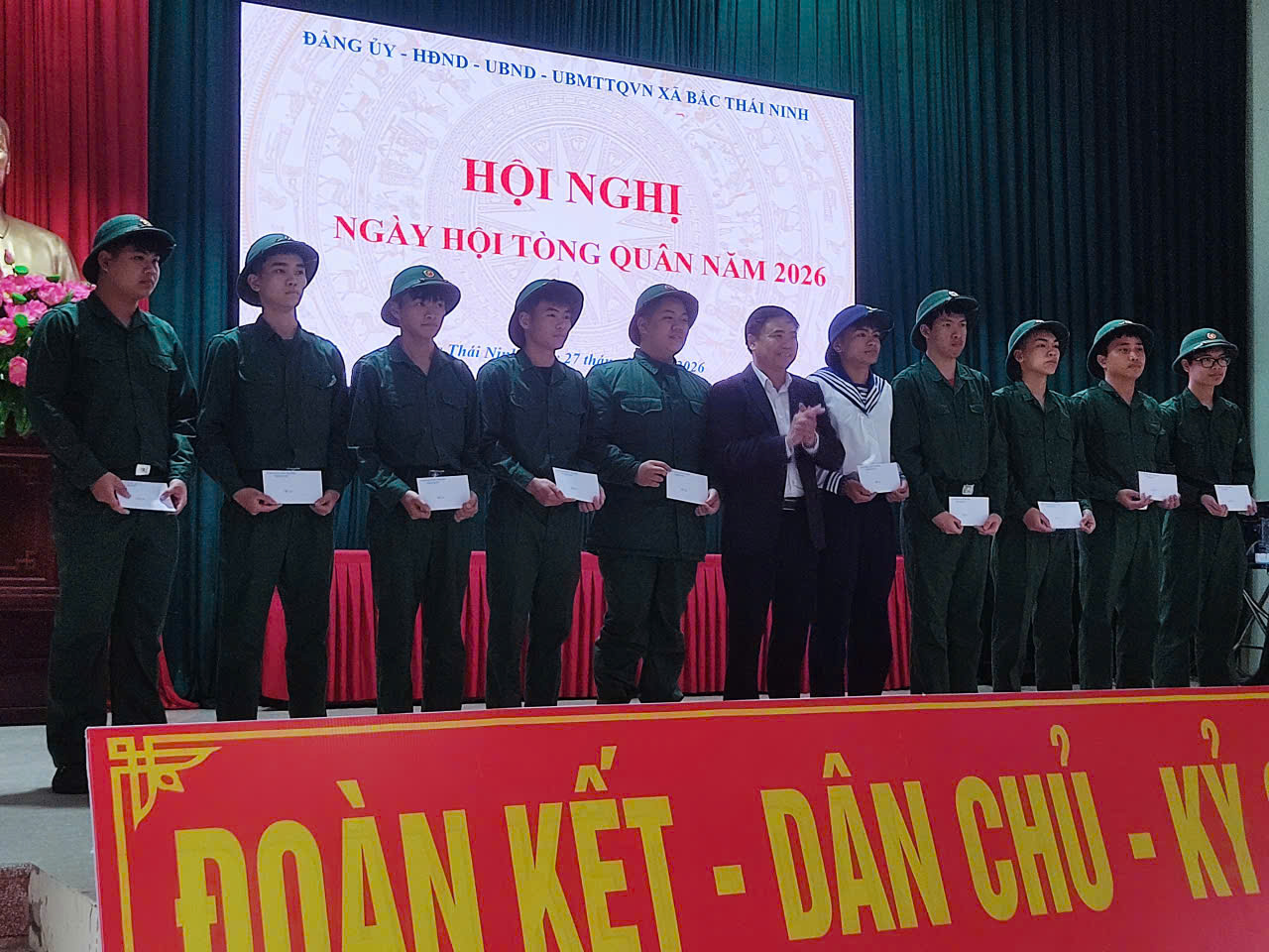 Ngày 27/2/26 Đảng ủy, HĐND, UBND, UBMT Tổ quốc Việt Nam và các ban ngành đoàn thể xã Bắc Thái Ninh long trọng tổ chức ngày hội Tòng quân năm 2026 và đón thanh niên hoàn thành nghĩa vụ quân sự trở về địa phương.